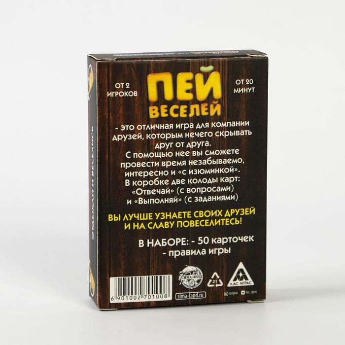 Купить игра для компании "пей веселей" 50 карт от 180 руб. с доставкой до пункта выдачи в Нариманове. Интернет магазин ДекаМаркет. Оплата при получении.