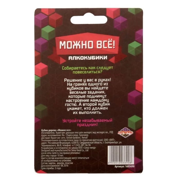 Купить кубик "можно все", алкокубики для принятия решений от 60 руб. с доставкой до пункта выдачи в Нариманове. Интернет магазин ДекаМаркет. Оплата при получении.
